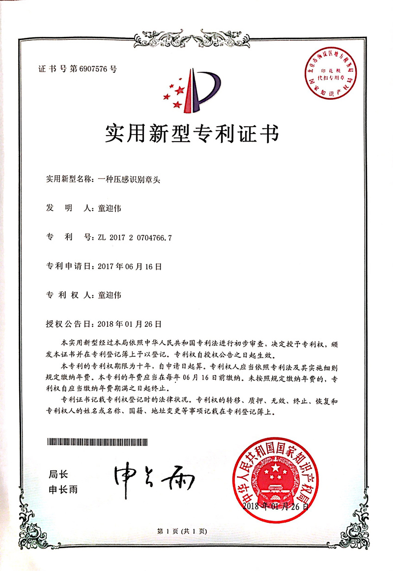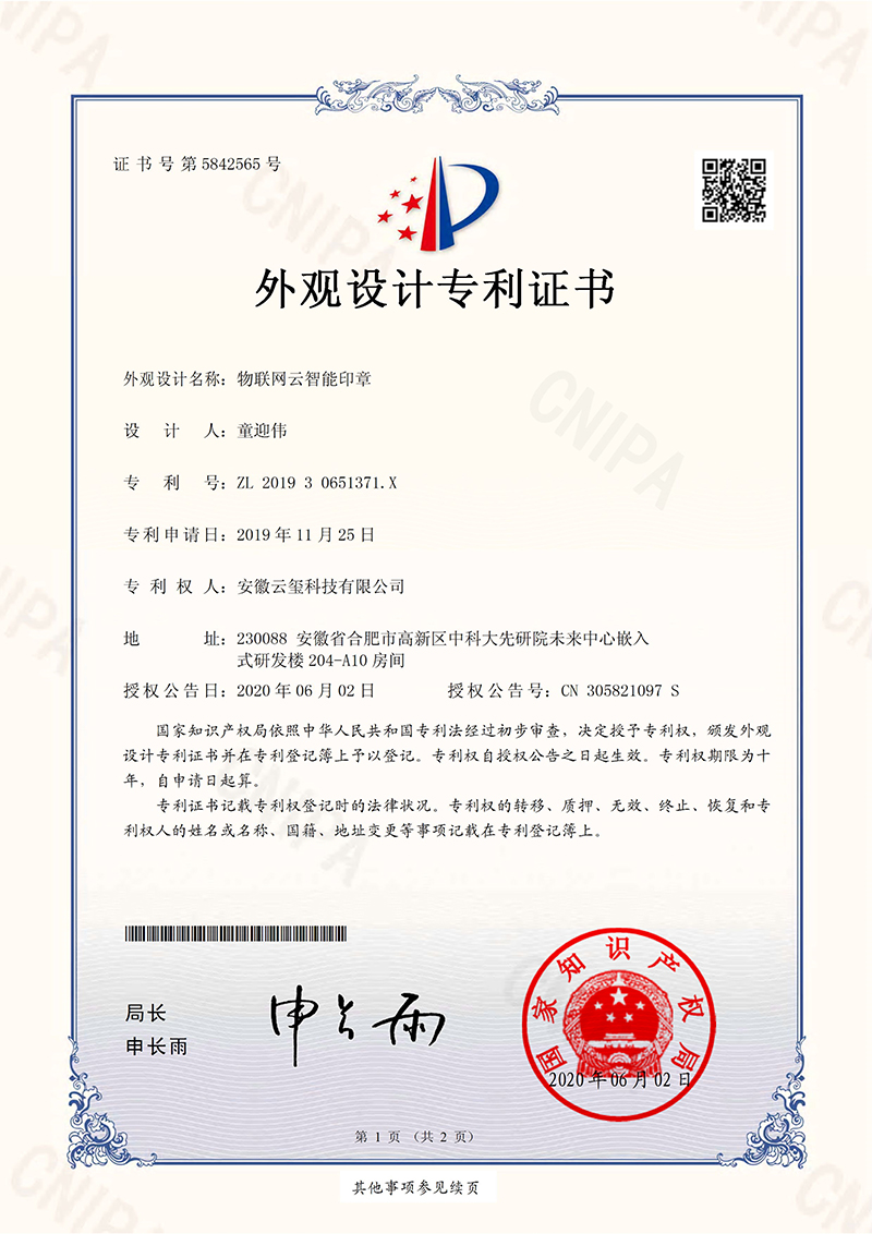 公司原創(chuàng)發(fā)明一體式智能印章技術(shù),引領(lǐng)國內(nèi)外新一代智能印簽創(chuàng)新變革。獲中日韓多項發(fā)明專利,徹底解決了實體印章和電子印簽管控的社會難題,獲國務(wù)院國資委全國央企熠星二等獎。公司聯(lián)合國家信息安全產(chǎn)品認證中心、公安部三所、信通院、中國印章協(xié)會等,主導(dǎo)起草了行業(yè)首個智能印章安全認證標(biāo)準(zhǔn)和智能印章產(chǎn)品標(biāo)準(zhǔn),引領(lǐng)了智能印章行業(yè)發(fā)展。