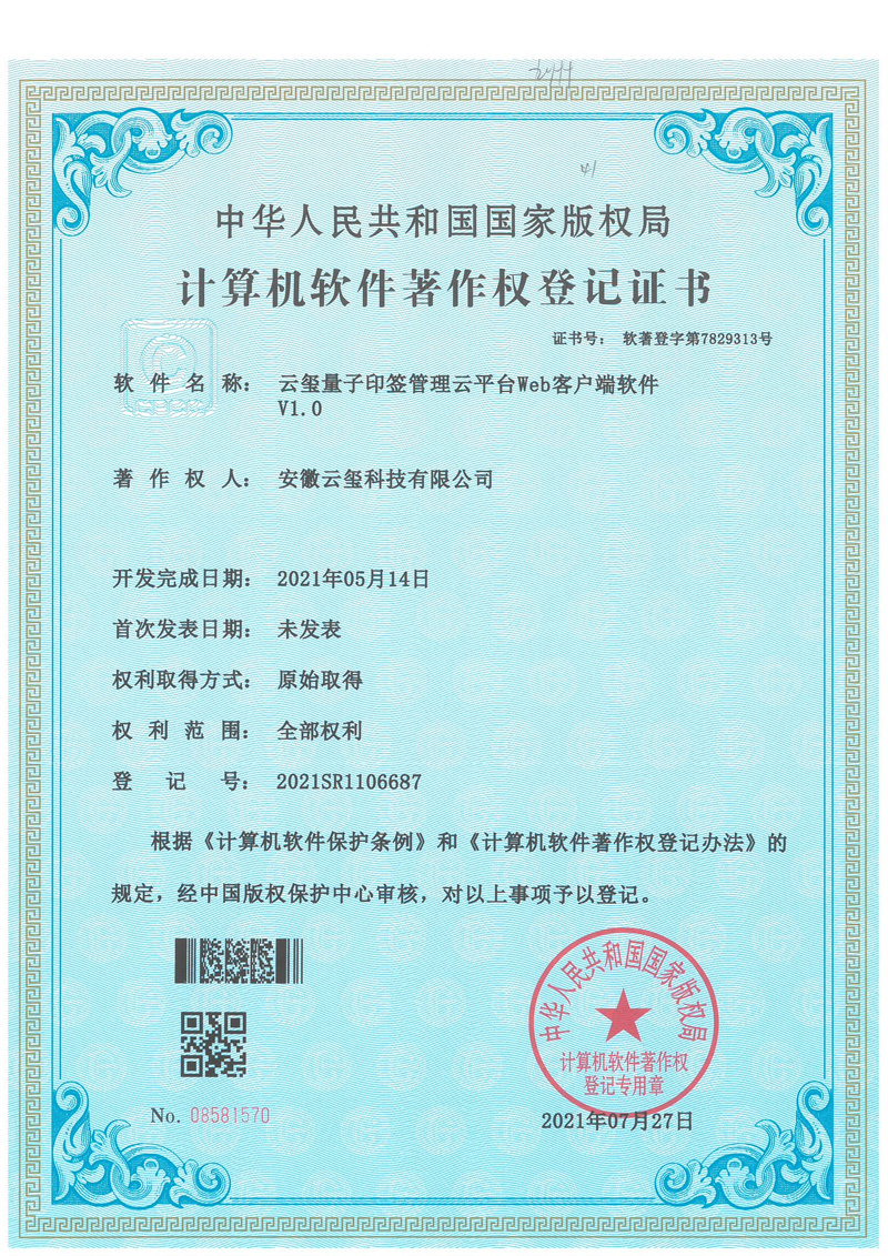 云璽量子印簽管理云平臺Web客戶端軟件V1.0